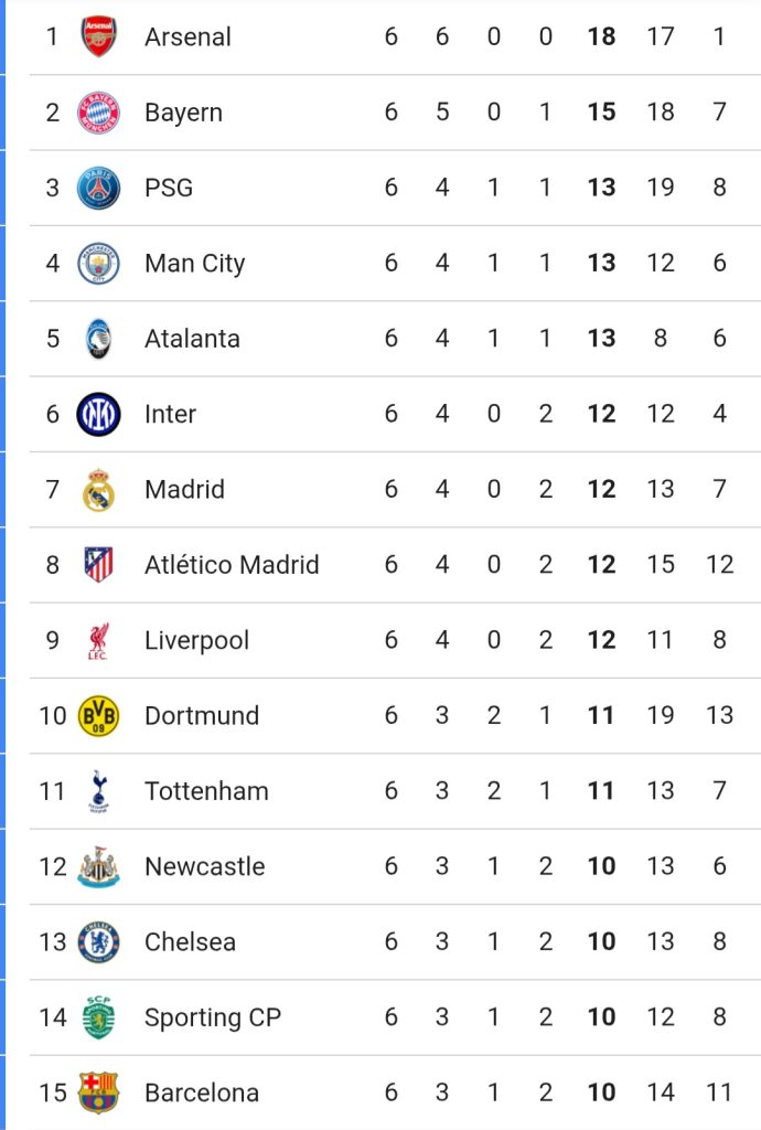 Atas hasil ini membuat perburuan 8 tiket lolos otomatis ke 16 besar makin ketat. PSG menggeser Atalanta dengan poin 13 unggul selisih gol di posisi 3, menyusul Mancity yang menang atas Real Madrid membuat Atalanta turun ke posisi 5.